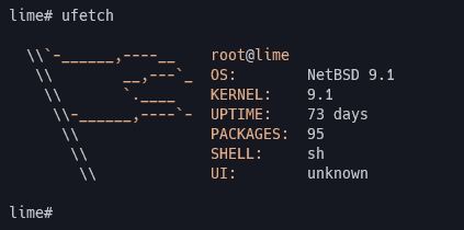 pkgin install ufetchufetchを実行すると以下のような感じ。